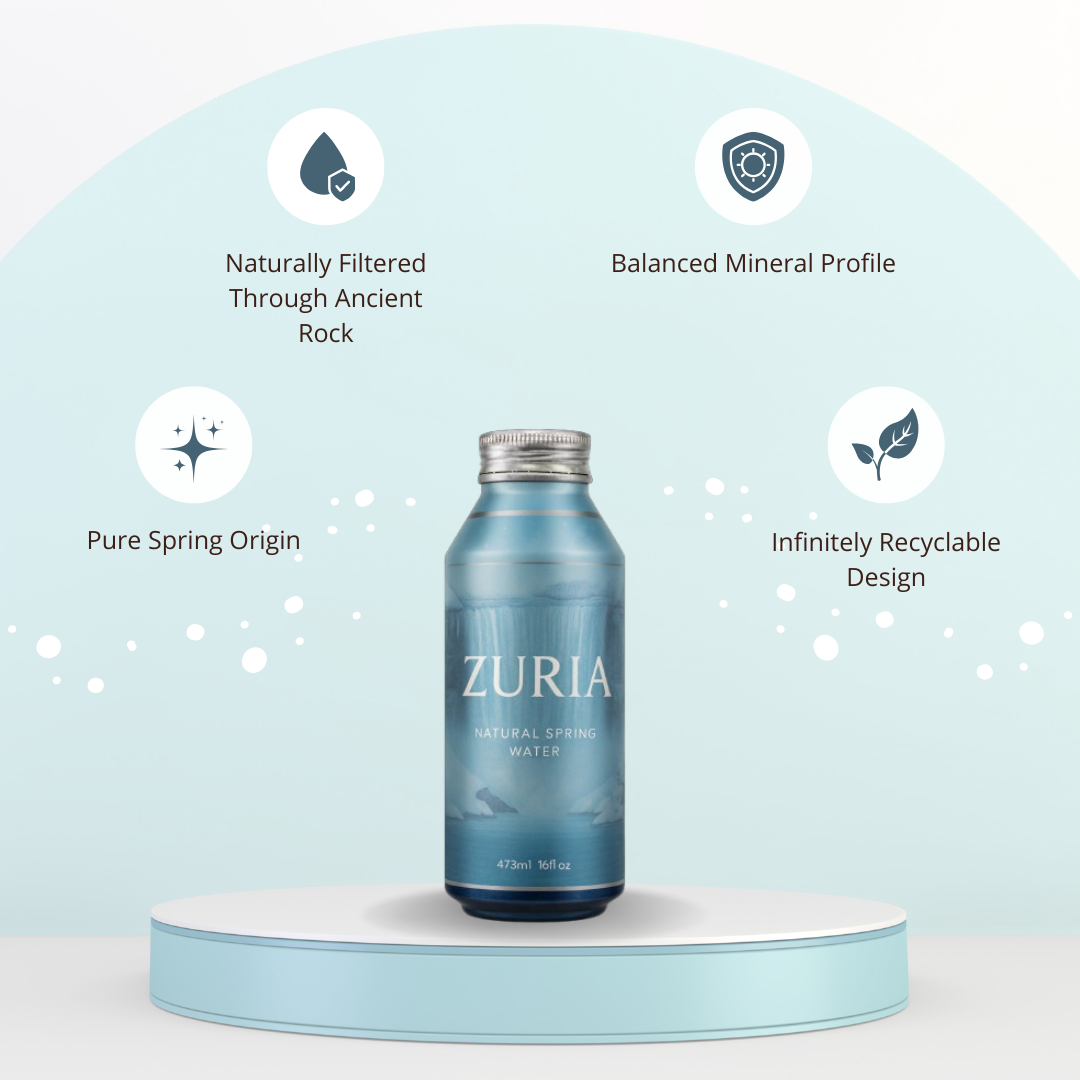 To redefine what it means to drink clean. ZURIA exists to inspire a global shift toward authenticity, sustainability, and balance — offering the purest natural spring water, bottled with integrity and purpose.